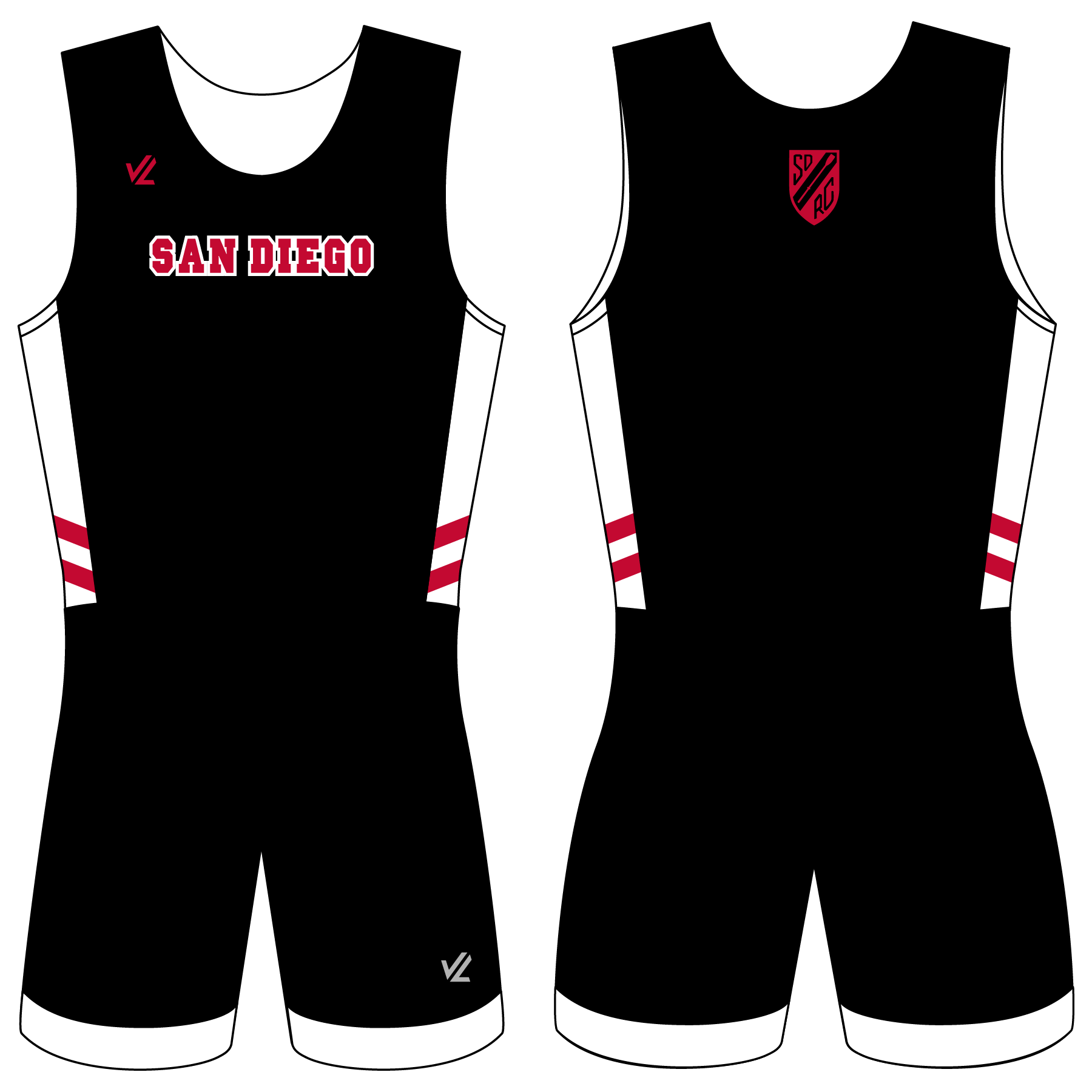 Men's Top Vertical 3" Stripe Unisuit With Ringer - SAN DIEGO ROWING CLUB JUNIORS